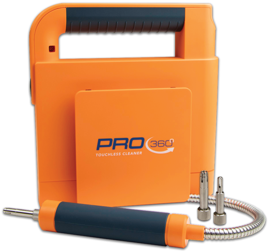 Pro360非接觸(chù)式清洗機是行業內自研首創便攜式清洗機,融合業內各(gè)種清潔設備的優點(diǎn),可將高純度溶劑噴射至單芯/多芯光器件光纖端麵,實現非接觸式清潔。利用科恩達效(xiào) 應,對光器件光纖端麵及法蘭內壁進行360°全方位(wèi) 清(qīng)潔。
