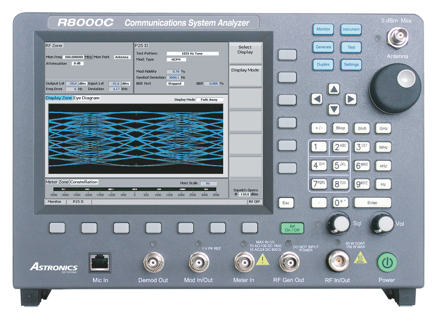 The R8000C is the most cost-effective comprehensive tester for trunked communication testing, mainly for analog/digital radio test instruments, with functions including: analog, digital, TETRA and other standards, with built-in batteries, first-class ergonomic design, it is suitable for almost any LMR test environment.