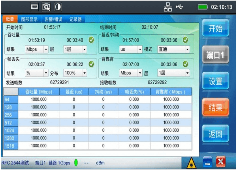 Support RFC 2544 standard throughput, delay, packet jitter, frame loss and back-to-back tests