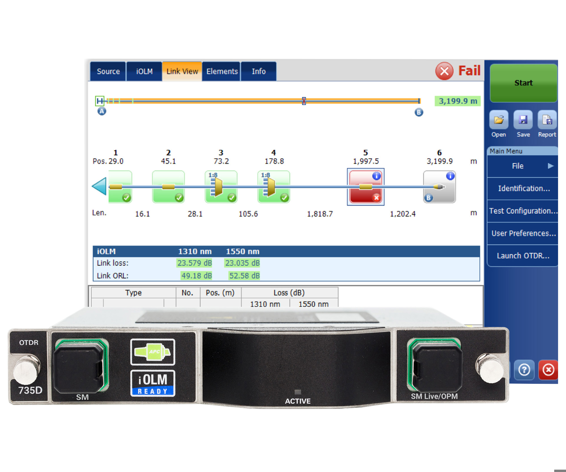 高動(dòng)態和高分辨率OTDR,針對城域網/核心網和FTTx/MDU光纖的部(bù)署與排障進行了優化(huà),設計用於城域網測試和在PON FTTx應(yīng)用中鑒定分(fèn)光器。
