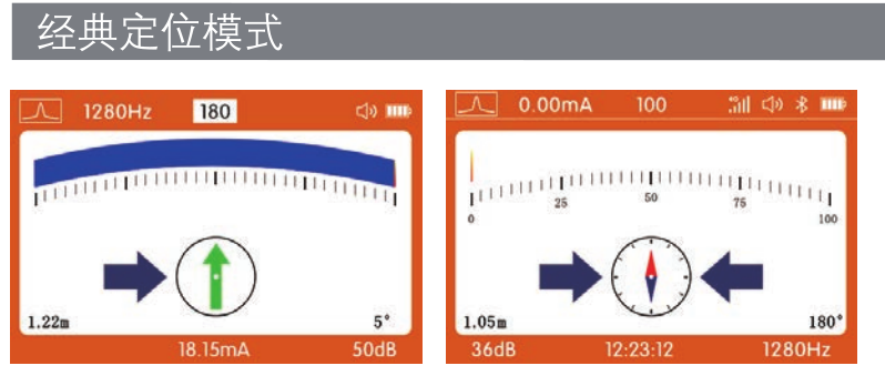 經典定位模式:羅盤、方向和信號幅值顯示,直觀顯示管線左右方向(xiàng)